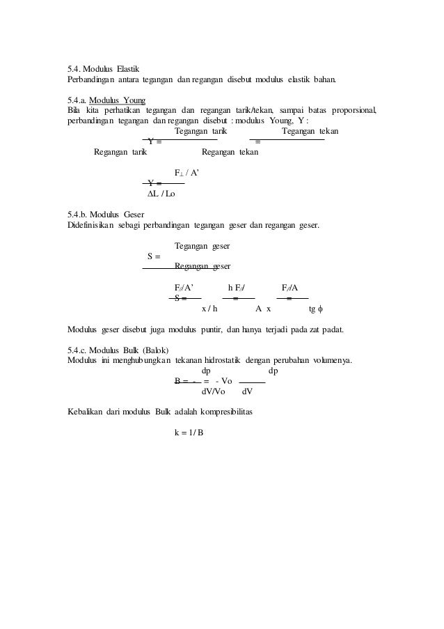 A.hukum hooke b.modulus young c.strain d.stress e.elastis. .perbandingan antara tegangan terhadap regangan volume, maka disebut dengan modulus bulk yang menunjukkan besarnya hambatan untuk mengubah volume suatu benda, dan • jika modulus elastisitas menyatakan perbandingan antara tegangan terhadap regangan shear, maka disebut. Perbandingan antara tegangan dan regangan benda tersebut disebut modulus elastisitas atau modulus young. Tegangan dan regangan terjadi pada benda yang dikenai gaya tertentu akan mengalami perubahan bentuk. Perbandingan antara tegangan dan regangan benda tersebut disebut modulus elastisitas atau modulus young.