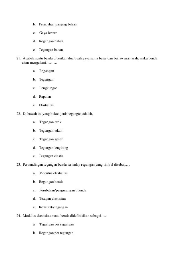 Silahkan anda klik link tentang kumpulan perbandingan antara tegangan terhadap regangan disebut yang ada di bawah ini. Regangan geser merupakan perbandingan dari perpindahan dari sudut terhadap dimensi modulus elastisitas antara perbandungan tegangan geser terhadap regangan geser disebut dengan modulus geser juga biasanya disebut shear modulus. Regangan geser adalah perbandingan tegangan geser yang terjadi dengan modulus elastisitasnya. Perbandingan tegangan terhadap regangan disebut. Tegangan ini disebut tegangan panas. Tegak lurus dengan bidang potongan, maka disebut regangan dan tegangan penampang batang (untuk kondisi lentur murni). 6.perbandingan antara gaya yang bekerja pada bahan dengan luas penampangan beban di sebut. Jadi regangan merupakan perubahan relatif ukuran atau bentuk benda yang mengalami tegangan. Pengukuran modulus young dapat dilakukan dengan menggunakan gelombang akustik, karena kecepatan jalannya bergantung pada modulus young. Terjawab • terverifikasi oleh ahli. Sudut ini dinyatakan dengan radian dan dinotasikan dengan γ. Perbandingan antara tegangan dan regangan benda tersebut disebut modulus elastisitas atau modulus young. Besarnya tegangan adalah perbandingan antara gaya tarik yang bekerja terhadap luas penampang benda.