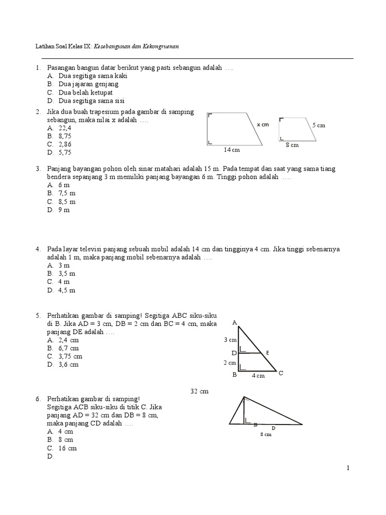 1 from Soal kesebangunan dan kekongruenan kelas 9. Check spelling or type a new query. We did not find results for: Maybe you would like to learn more about one of these?